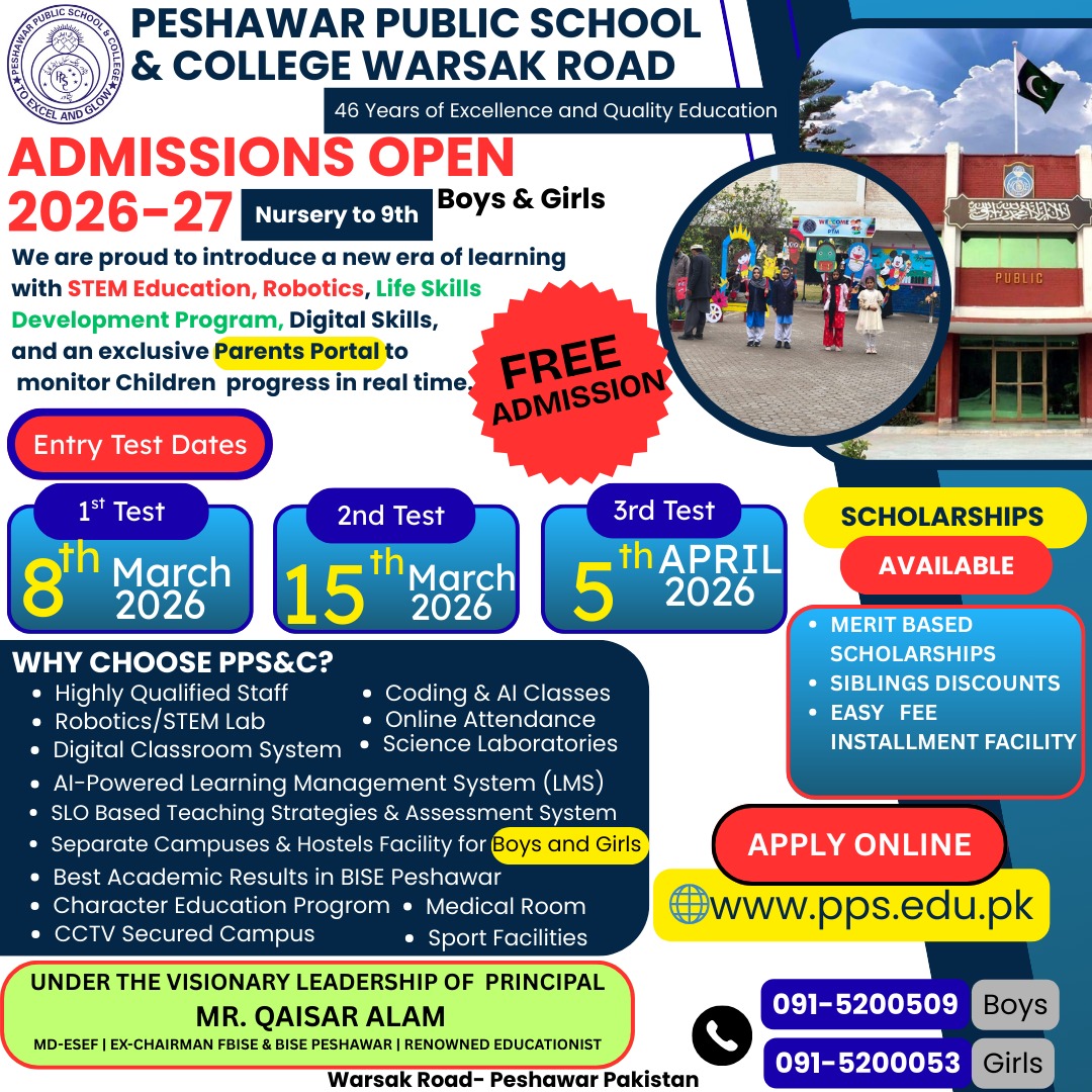 Peshawar Public School and College is pleased to announce the last date of entry test for admission